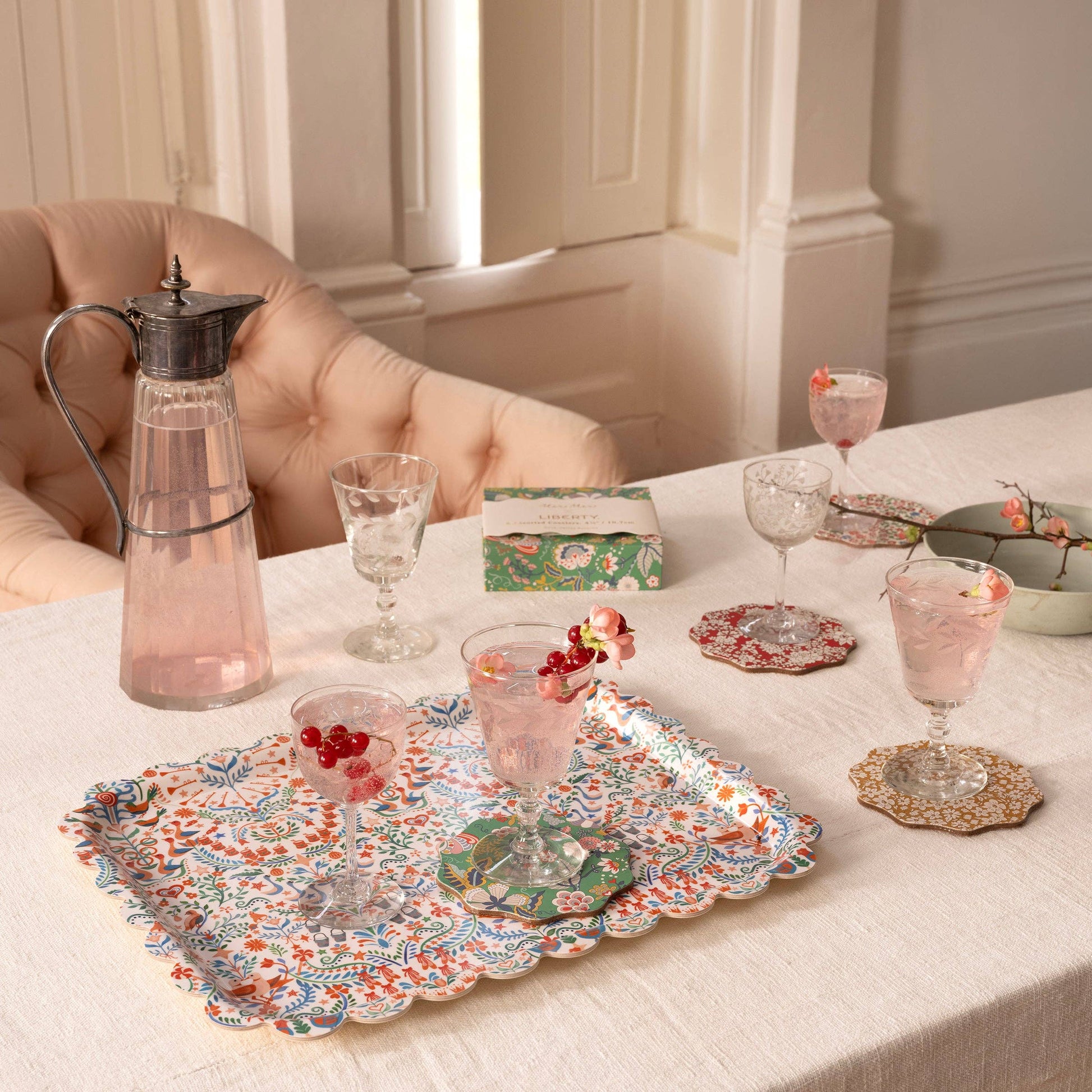 This petite rectangular tray is crafted from birch veneer plywood and features a durable melamine finish. Showcasing a festive Christmas print with charming scalloped edges, it measures 14.5 by 11.5 inches and is just half an inch deep—perfect for serving holiday treats with a touch of whimsy.