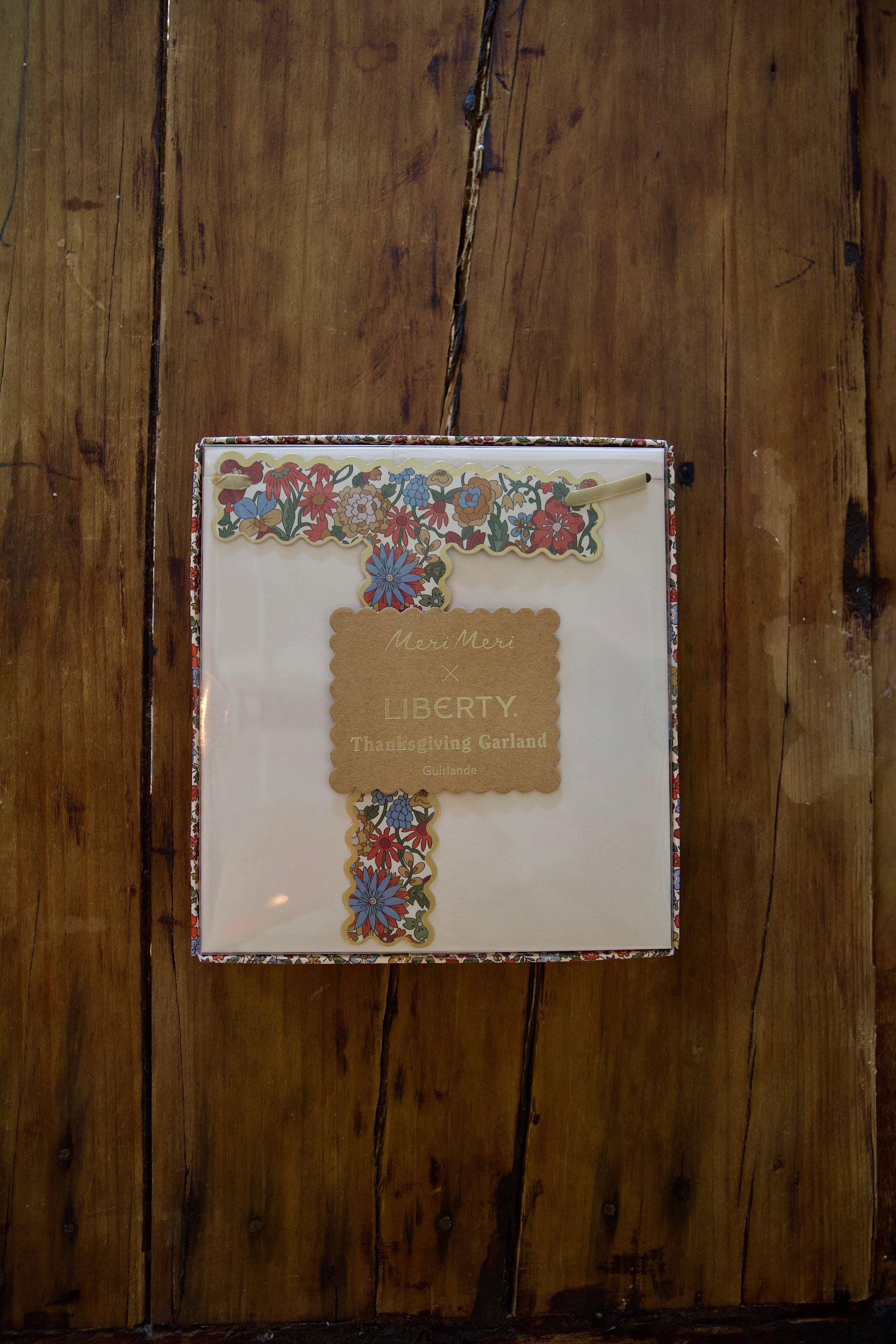 This set includes two paper garlands that proudly display 'Happy Thanksgiving.' Featuring cozy fall Liberty floral patterns and scalloped letters accented with a matte gold foil trim. Complimented by soft, muted gold velvet ribbons, each garland stretches 5.5 feet long, reaching 9.5 feet when you add the extra cord. Perfect for adding festive charm to your celebrations!