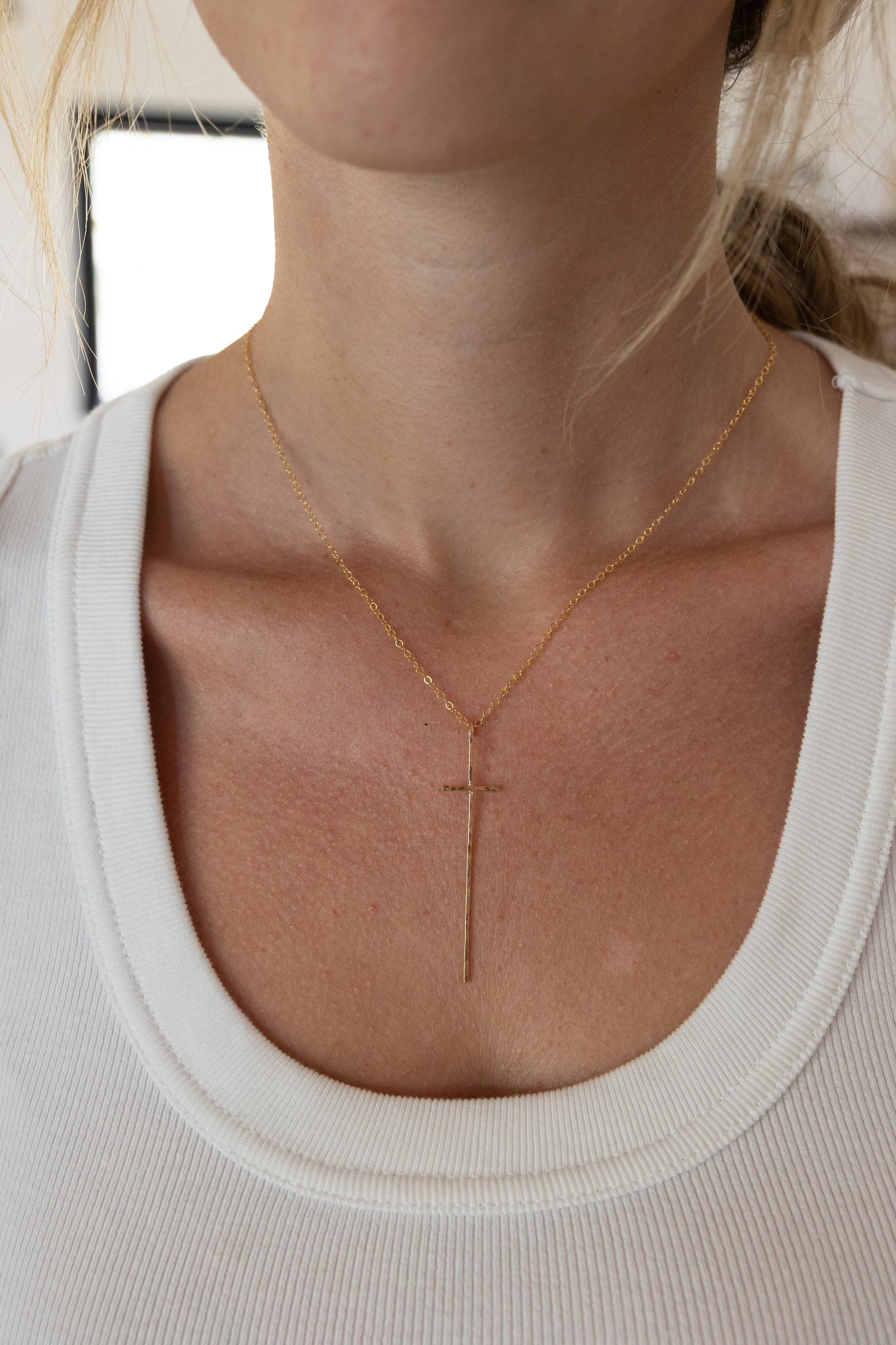 Add a touch of sparkle to your style with this Modern Cross Necklace, crafted from 14k gold-filled material that stays bright and tarnish-free. Perfect for everyday wear or layering, it brings a timeless charm to any outfit.